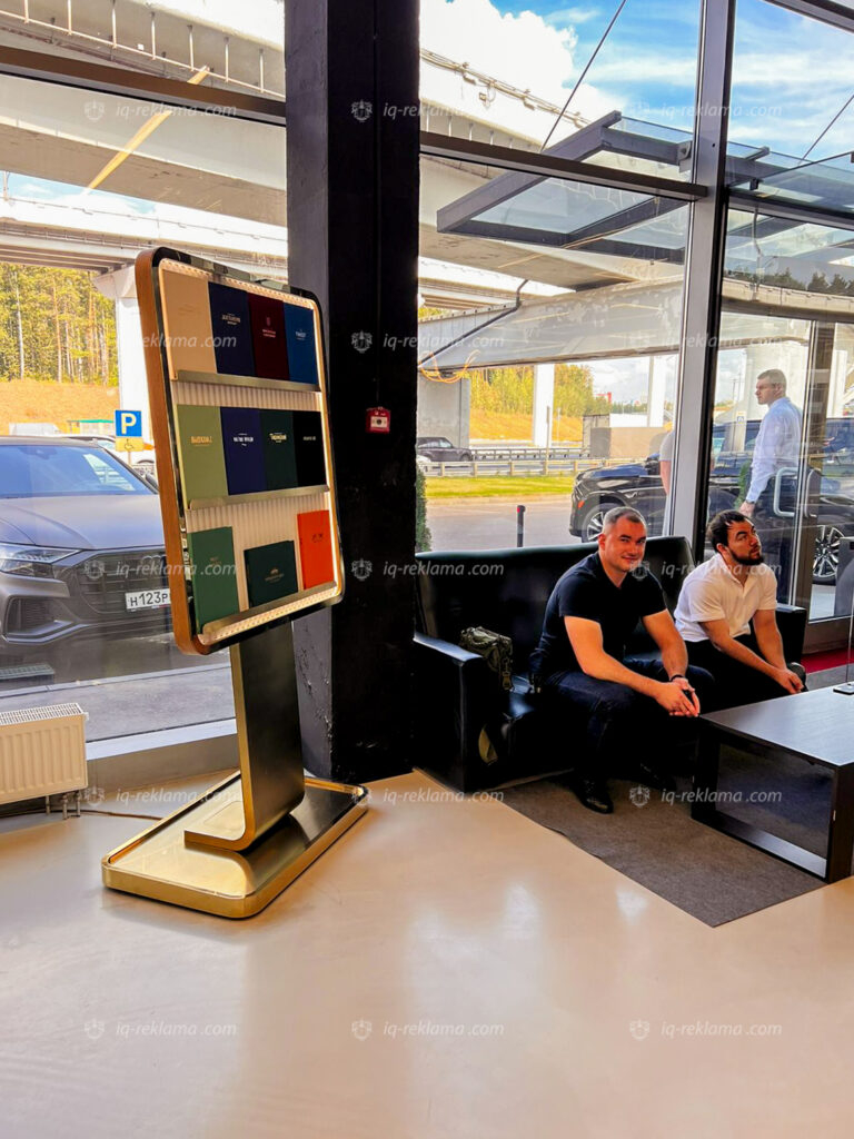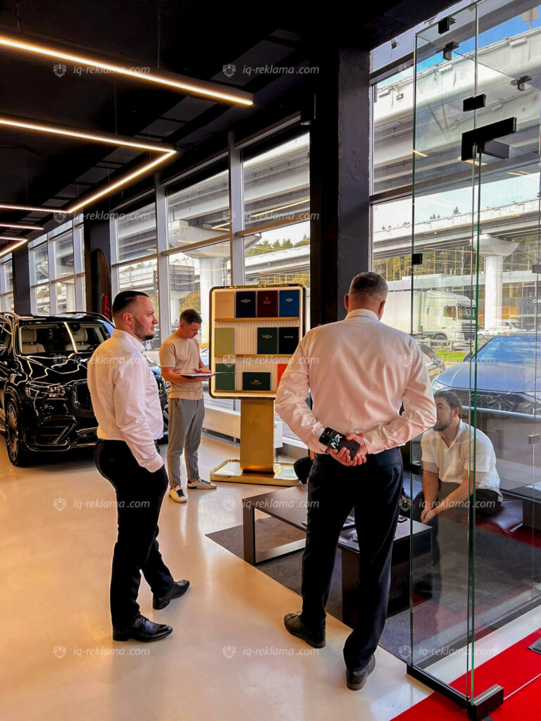 Центр продаж автомобилей премиум-класса. Размещение полиграфии в зоне Welcome обеспечило контакт с бизнесменами и инвесторами — ключевой аудиторией для luxury-недвижимости.