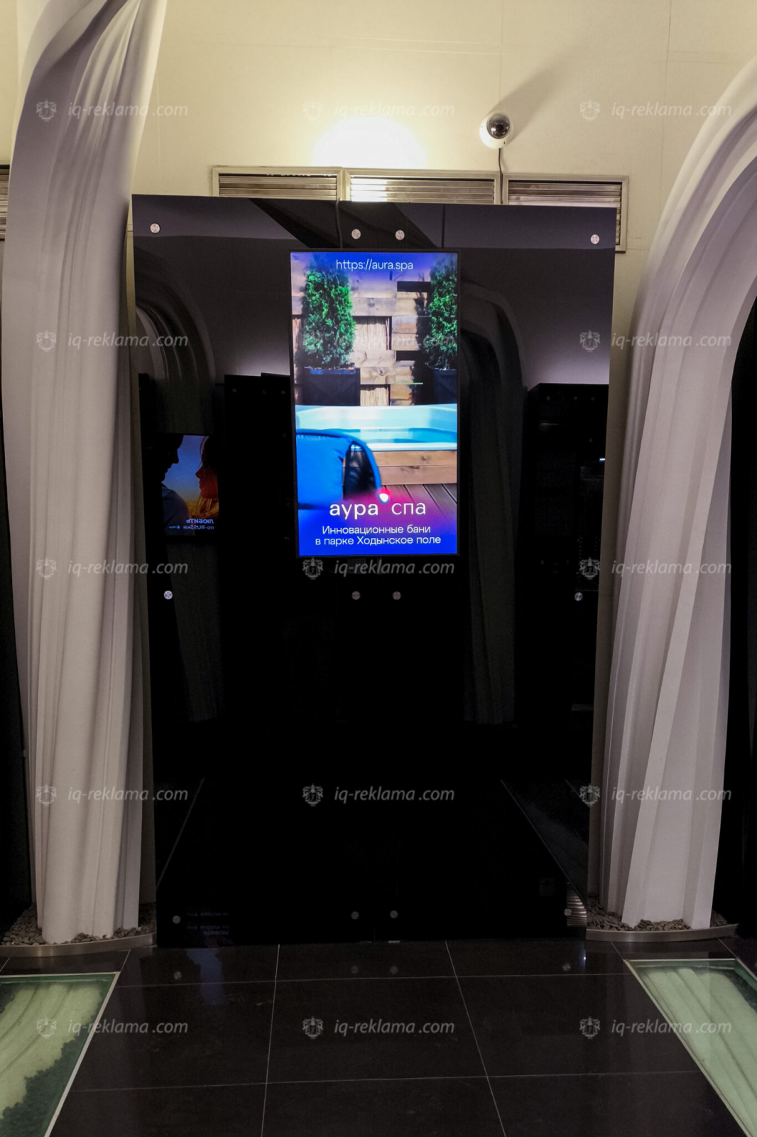 С октября 2025 года агентство IQ разместило indoor рекламу банного комплекса Aura SPA на вертикальных видеоэкранах в холлах бизнес-центров Москвы. Кампания была организована в престижных деловых комплексах с высокой проходимостью, что обеспечило контакт с аудиторией предпринимателей и руководителей, ежедневно контактирующих с зонами ресепшн и лифтов.