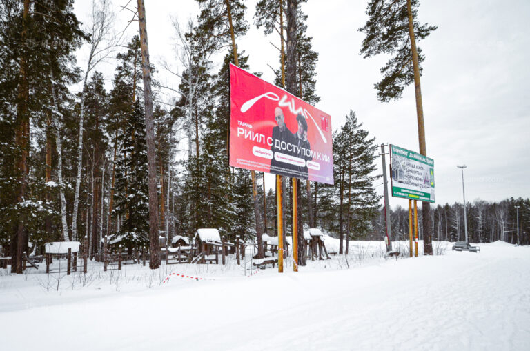 Рекламные носители установлены на фасаде здания проката и в пешеходной зоне рядом с аттракционом ЗОРБ, а также на билборде напротив первого склона, что обеспечивает высокую визуальную эффективность и охват целевой аудитории, интересующейся элитным отдыхом.