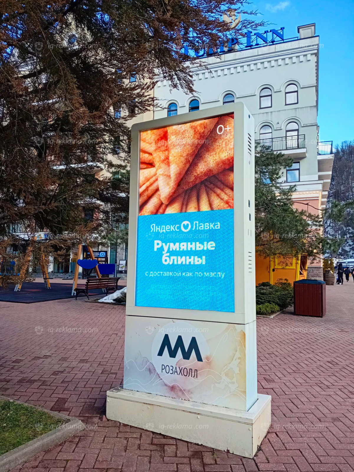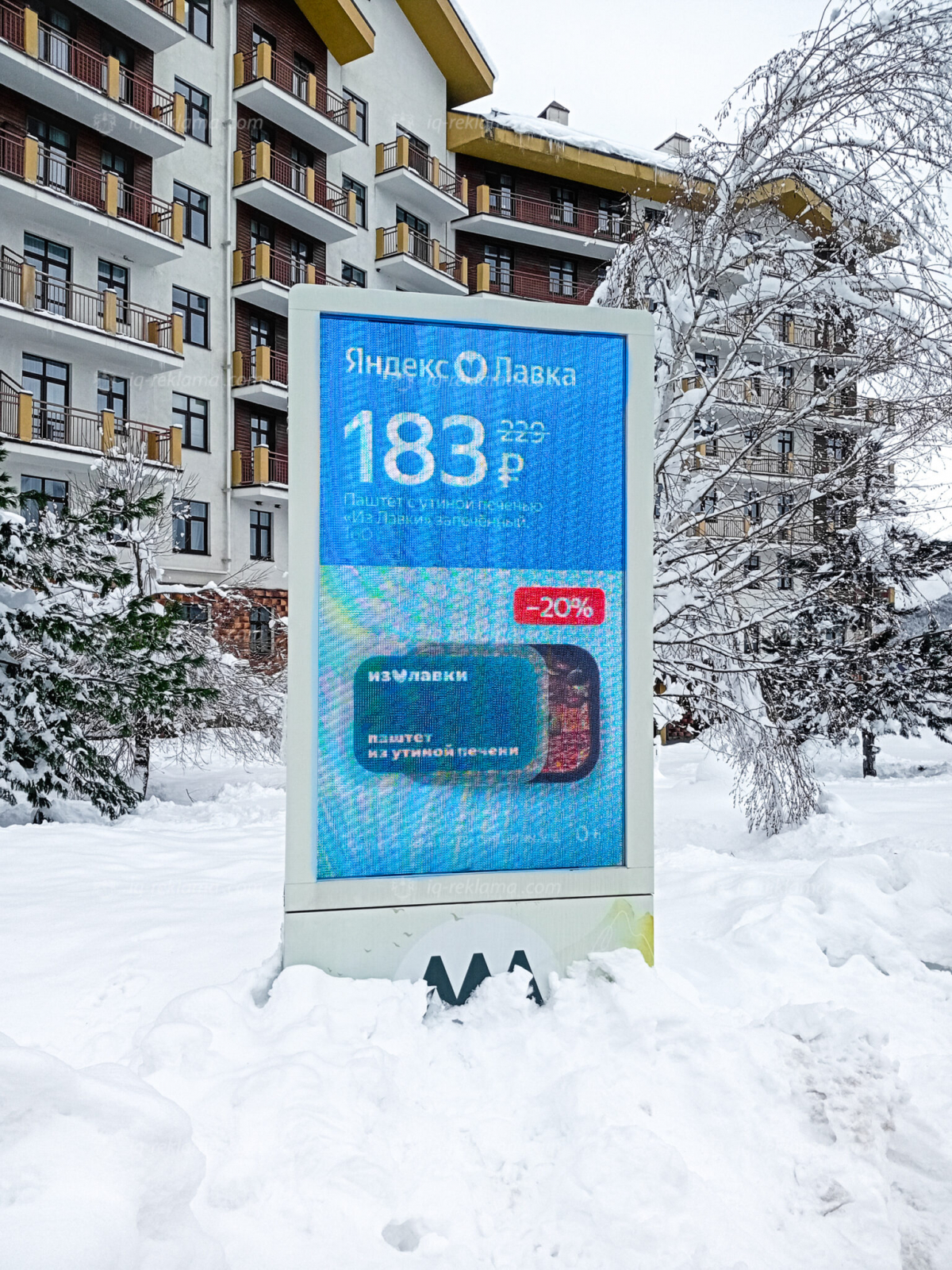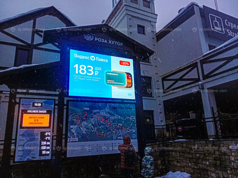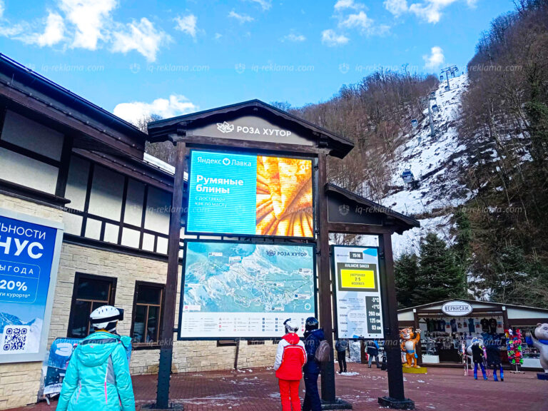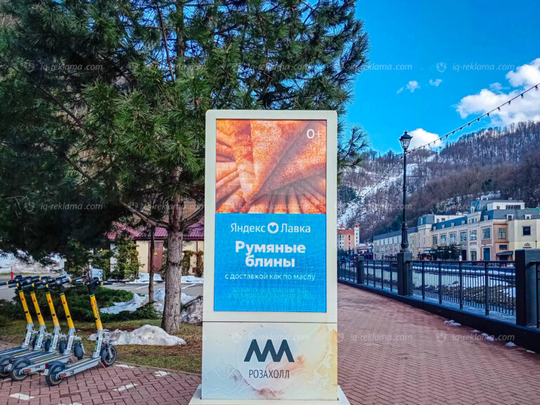 Зимой 2026 года агентством IQ была размещена outdoor реклама клиента онлайн-магазин Яндекс Лавка на территории всесезонного курорта Роза Хутор в Сочи.