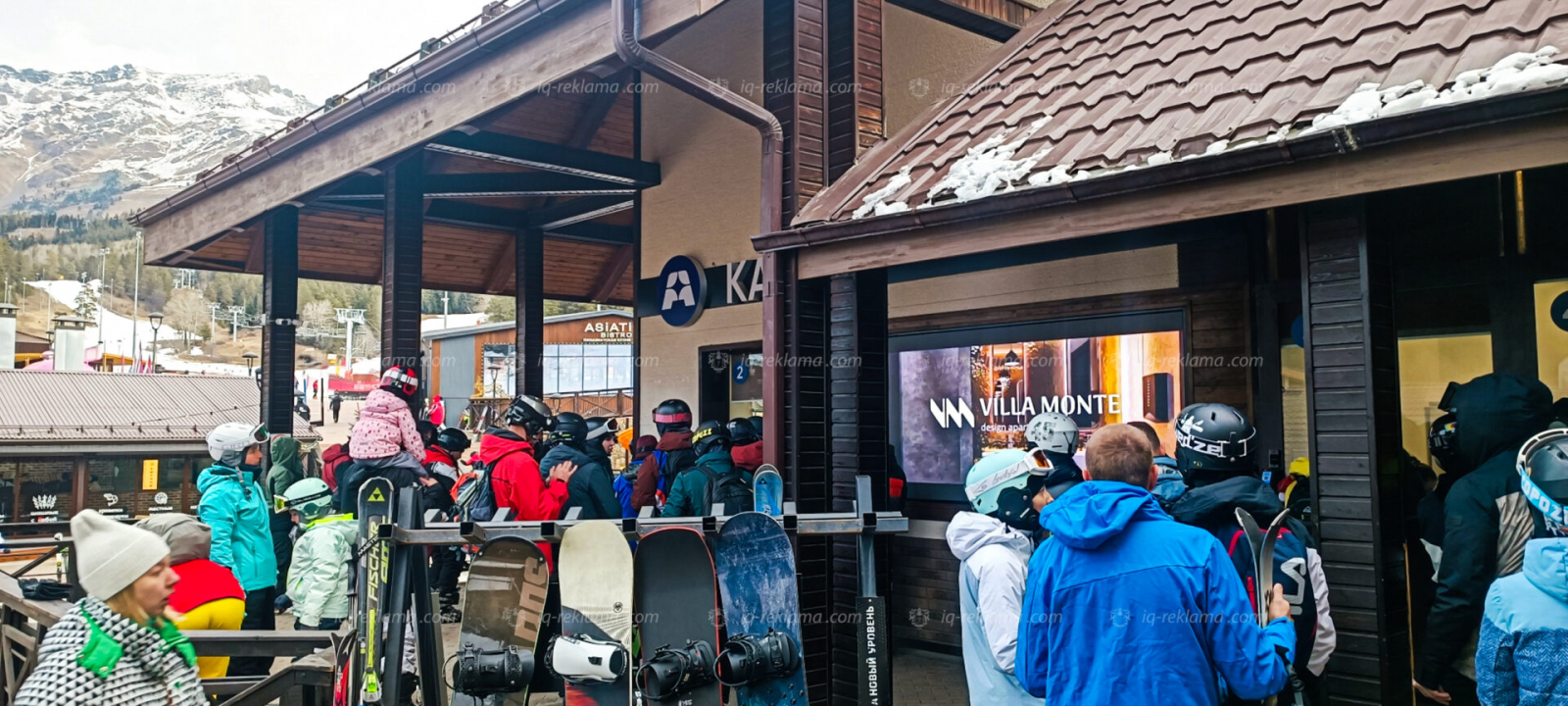 Видеоэкраны стали идеальной точкой контакта с ценной аудиторией курорта. Поток гостей, приобретающих ски-пассы, за сезон превысил 1 500 000 человек — и многие из них оказались под впечатлением от ярких визуальных образов! Кампания строилась на яркой эмоции от атмосферы: заснеженные склоны, бескрайнее небо и уютные интерьеры Villa Monte органично сплелись в единый нарратив о качестве жизни на природе.