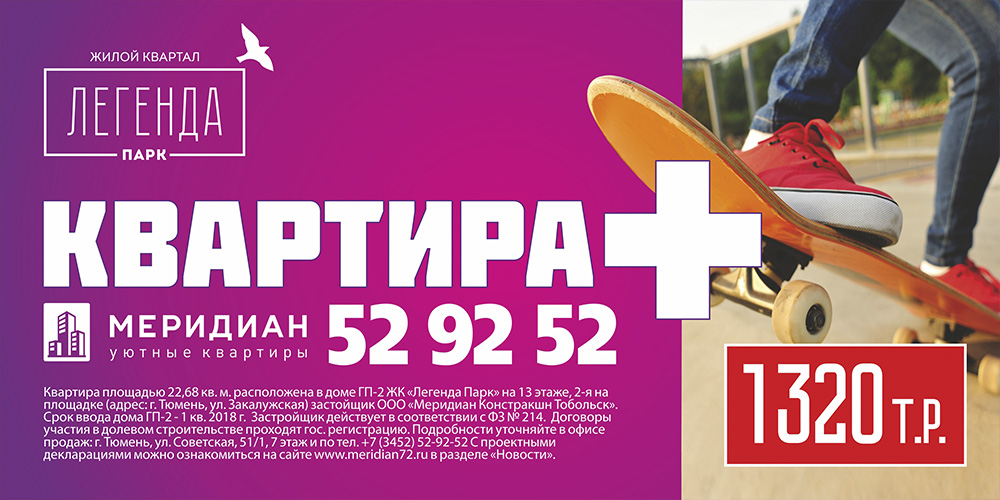 Мы продолжаем работать с СК «Меридиан» над продвижением жилого комплекса «Легенда Парк». Идет второй этап реализации рекламной кампании «Квартира +».