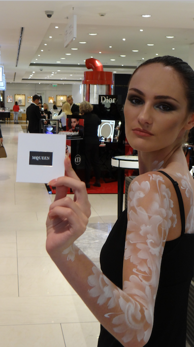 Художники нашей студии "Три Крыла" были приглашены для воплощения образов бодиарт на презентации нового аромата от Alexander Mcqueen. Перед нами стояла задача сделать бодиарт в стилистике и цветовой гамме стенда. По задумке наших заказчиков из коммуникационного агентства, рисунок должен был с руки девушек-моделей переходить на плечо, грудь и спину. Наши работы Вы можете посмотреть в галерее на нашем сайте http://www.3kryla.ru/show/art-proekty/bodyart/