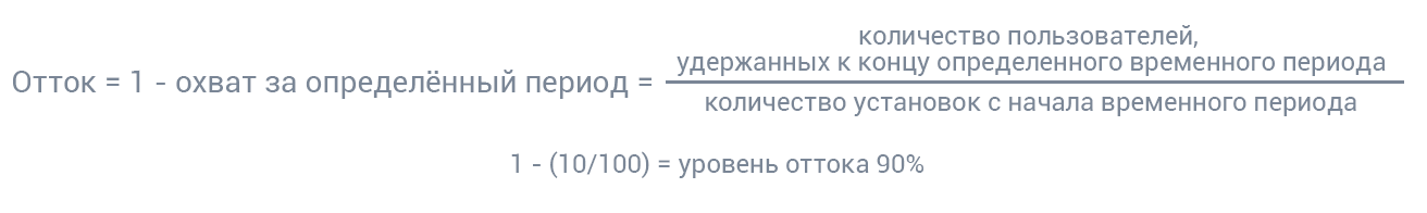 Отток пользователей — это противоположность удержанию. Например, если после определённого периода времени ваш процент удержания составляет 25%, а затем от вас "уходит" 75% клиентов.