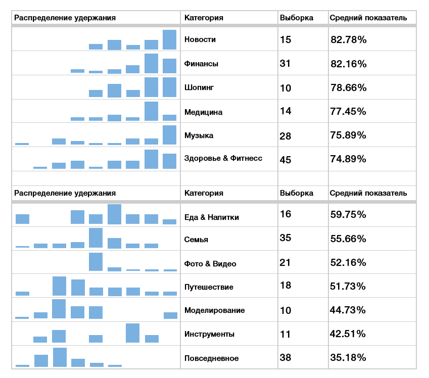 Эндрю Чен также рекомендует сравнивать показатели приложений по категориям, а не по всей отрасли в целом.