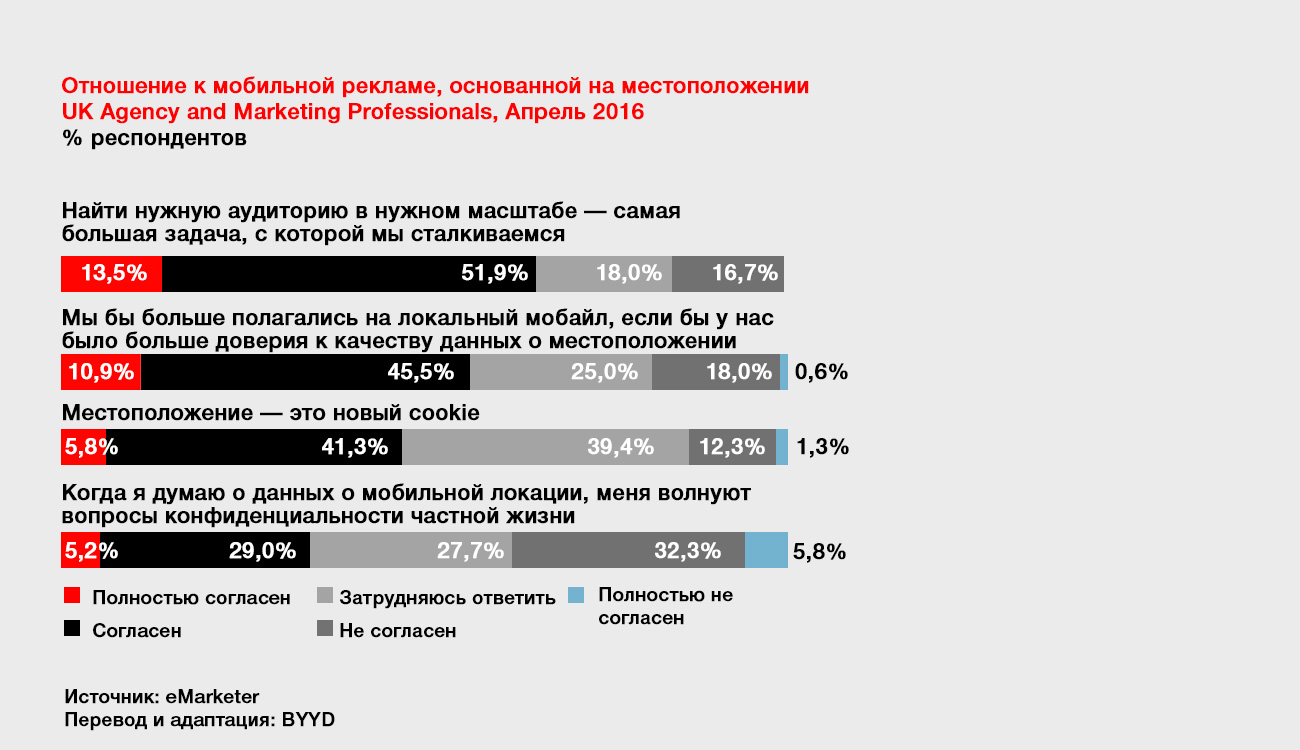 Более 72% британских агентств и маркетологов, опрошенных Pinpoint в апреле 2016 года сказали, что уже используют мобильный маркетинг местоположения, а 21,3% — планируют это сделать.