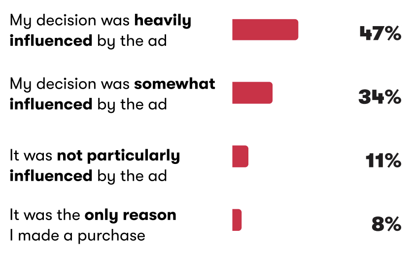 47% респондентов региона LATAM говорят, что на их намерение совершить покупку сильно влияет реклама. 74% пользователей сказали, что предпочитают видеорекламу в сезон распродаж.