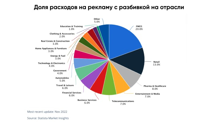 Многие бренды это уже практикуют. Согласно порталу statista, расходы на рекламу товаров FMCG самые высокие по рынку – до 20%.