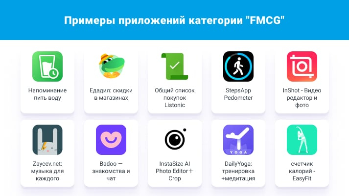 На платформе BYYD продвижение FMCG товаров доступно в приложениях тематик, связанных со здоровьем, правильным питанием, спортом, шоппингом и др.