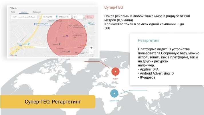Супер-гео – еще одна важная настройка. Она полезна, если FMCG компании хотят показать рекламу людям выбранной местности. К примеру, посетителям торгового центра или конкретного магазина.
