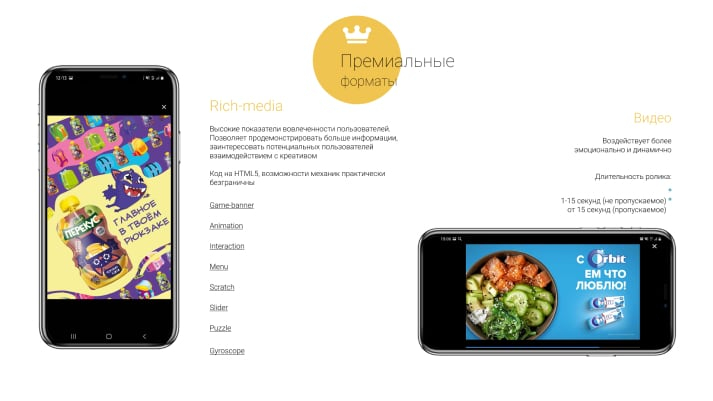 Между прочим, в BYYD есть как интерактивные, так и статичные форматы. Поэтому для комплексного охвата аудитории, FMCG компании могут использовать оба вида креативов.