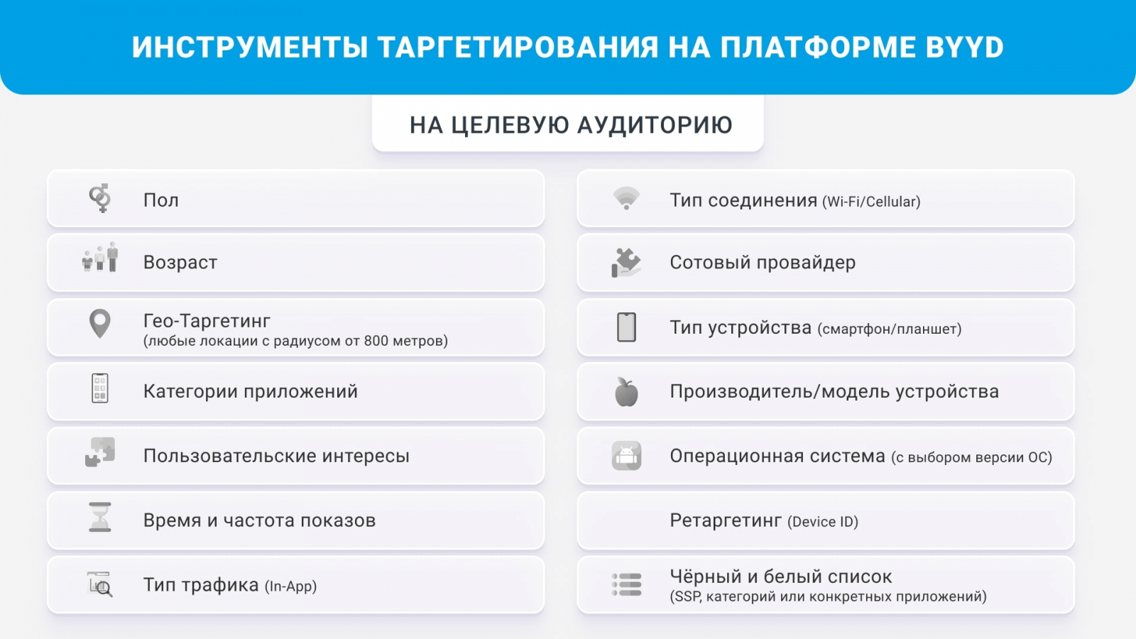 Не упускайте мобильную аудиторию: запускайте продвижение в BYYD и привлекайте лояльных клиентов уже сейчас.