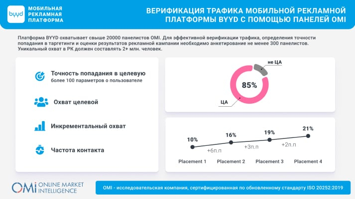 Напомним, что помимо сервисов Weborama, Adriver, Gemius, MOAT, Sizmek, DCM, IAS, DoubleVerify, наш мобильный трафик можно верифицировать с помощью панелей OMI.