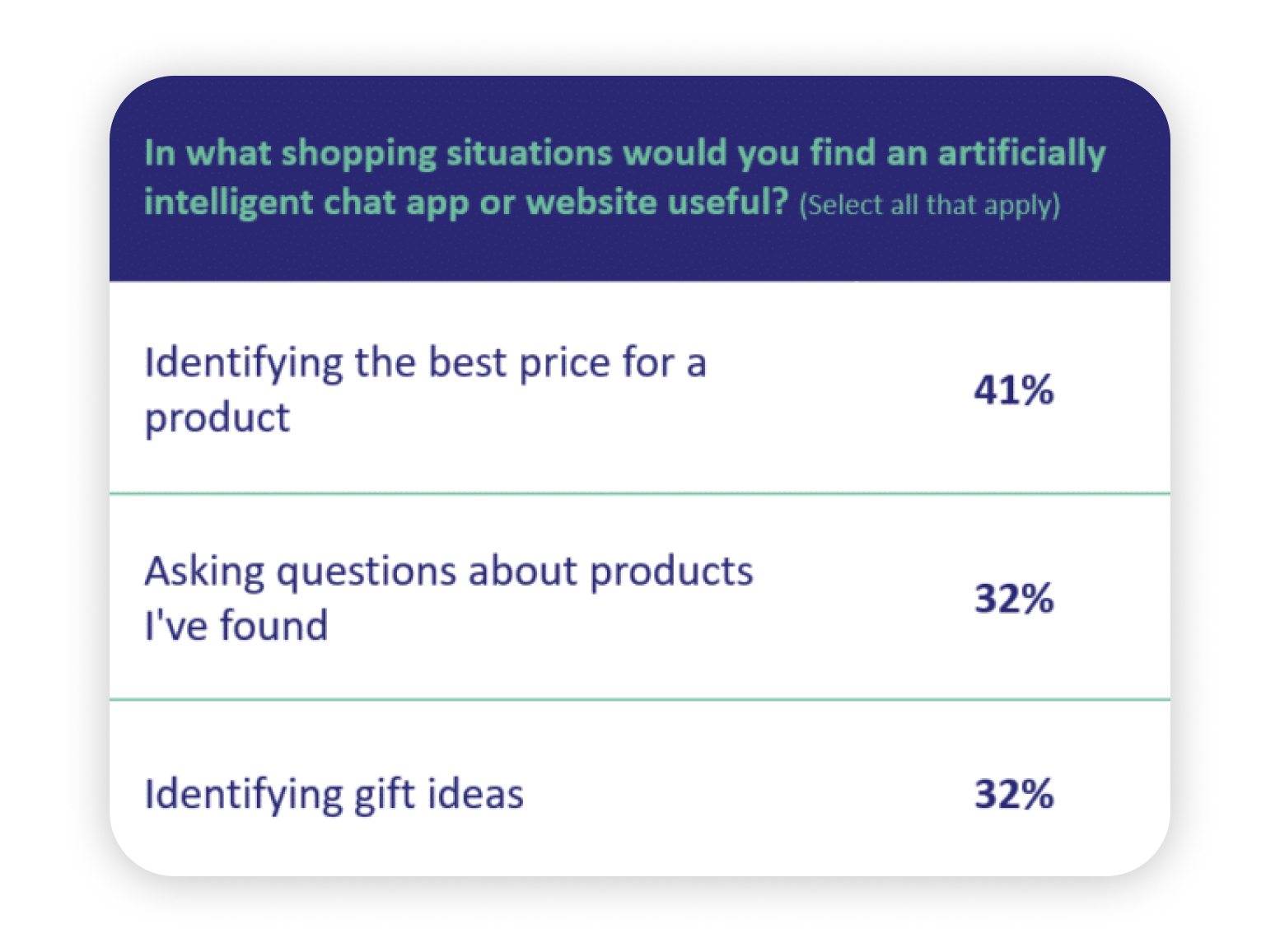 Более 80% потребителей признают полезность искусственного интеллекта при покупках. Из них 41% предпочитают использовать ИИ для поиска лучшей цены на товар, в то время как 32% обращаются к нейросетям для составления списка подарков.