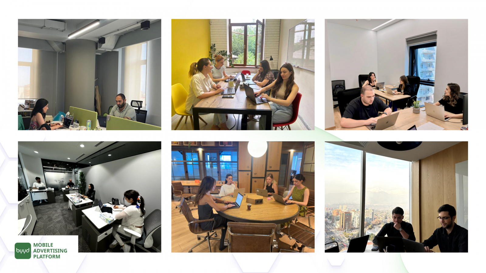 Команда BYYD состоит из сотрудников, работающих в 12 странах мира. При этом приоритет отдается использованию коворкингов вместо отдельных офисов, что позволяет исключить неиспользуемые площади и снизить потребление энергии.