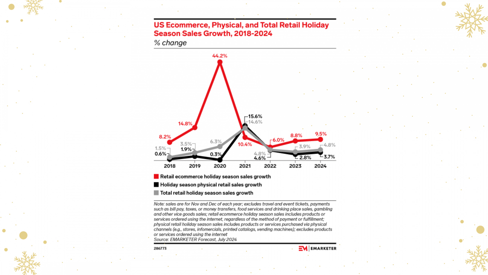 Несмотря на сокращение сезона, eMarketer прогнозирует рост онлайн-продаж на 9,5%, что открывает возможности для брендов, готовых адаптировать свои кампании.