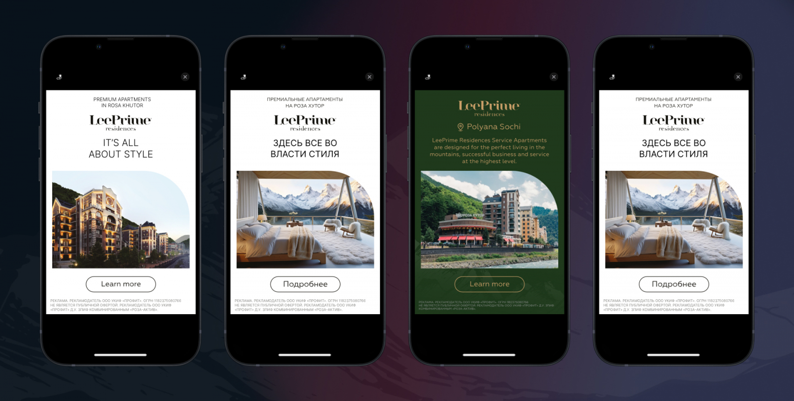 Так поступил бренд Lee Prime, премиальный жилой комплекс в центре Красной Поляны. Он решил использовать нашу платформу для продвижения среди иностранных туристов.