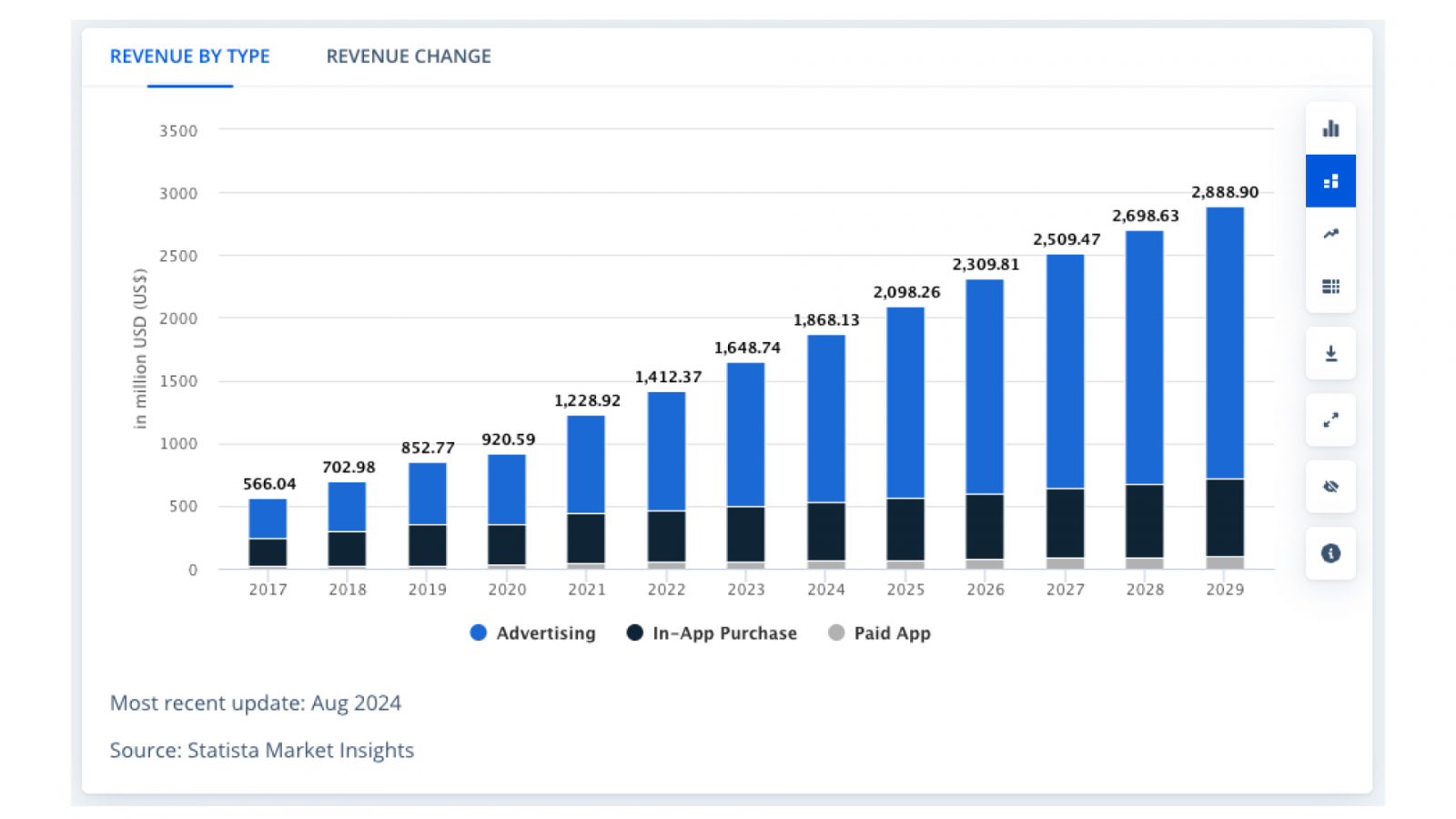 Ожидается, что к 2025 году показатель вырастет до 9,7 млн долларов. Основной источник дохода платформ — реклама внутри приложений.