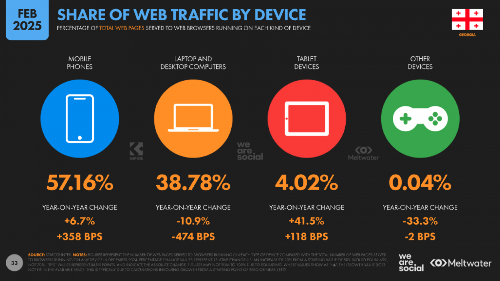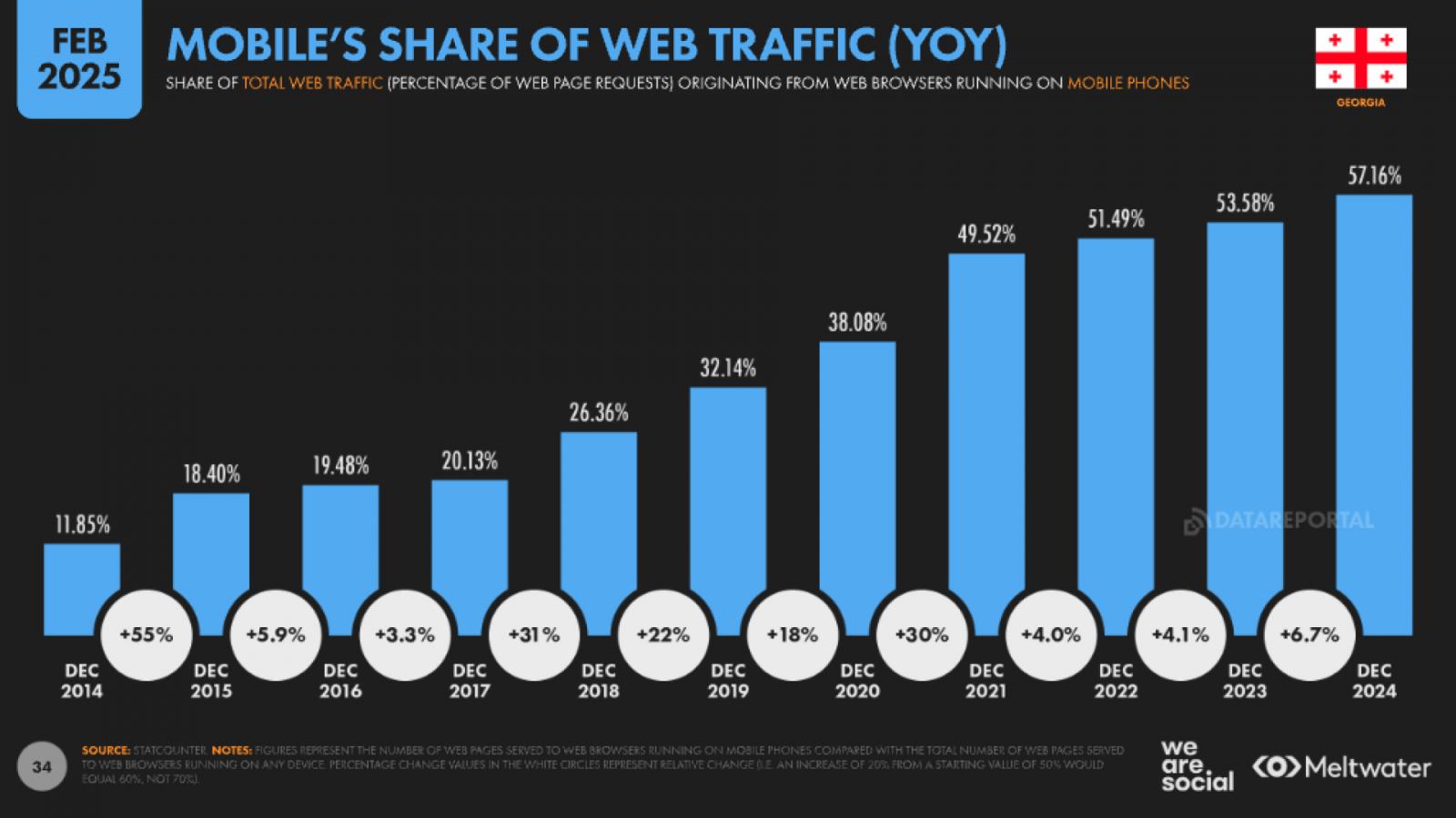 Согласно данным DataReportal Georgia, основная часть веб-трафика приходится на мобильные устройства.