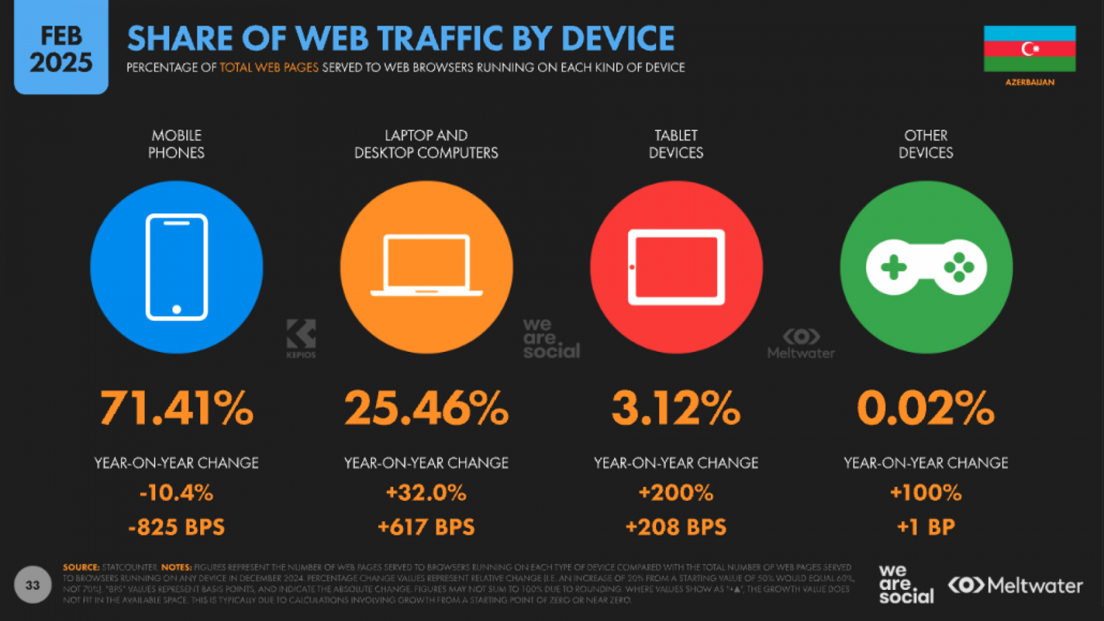 В стране доминирует мобильный веб-трафик – на него приходится 71,41 %. Остальные каналы распределяются следующим образом: