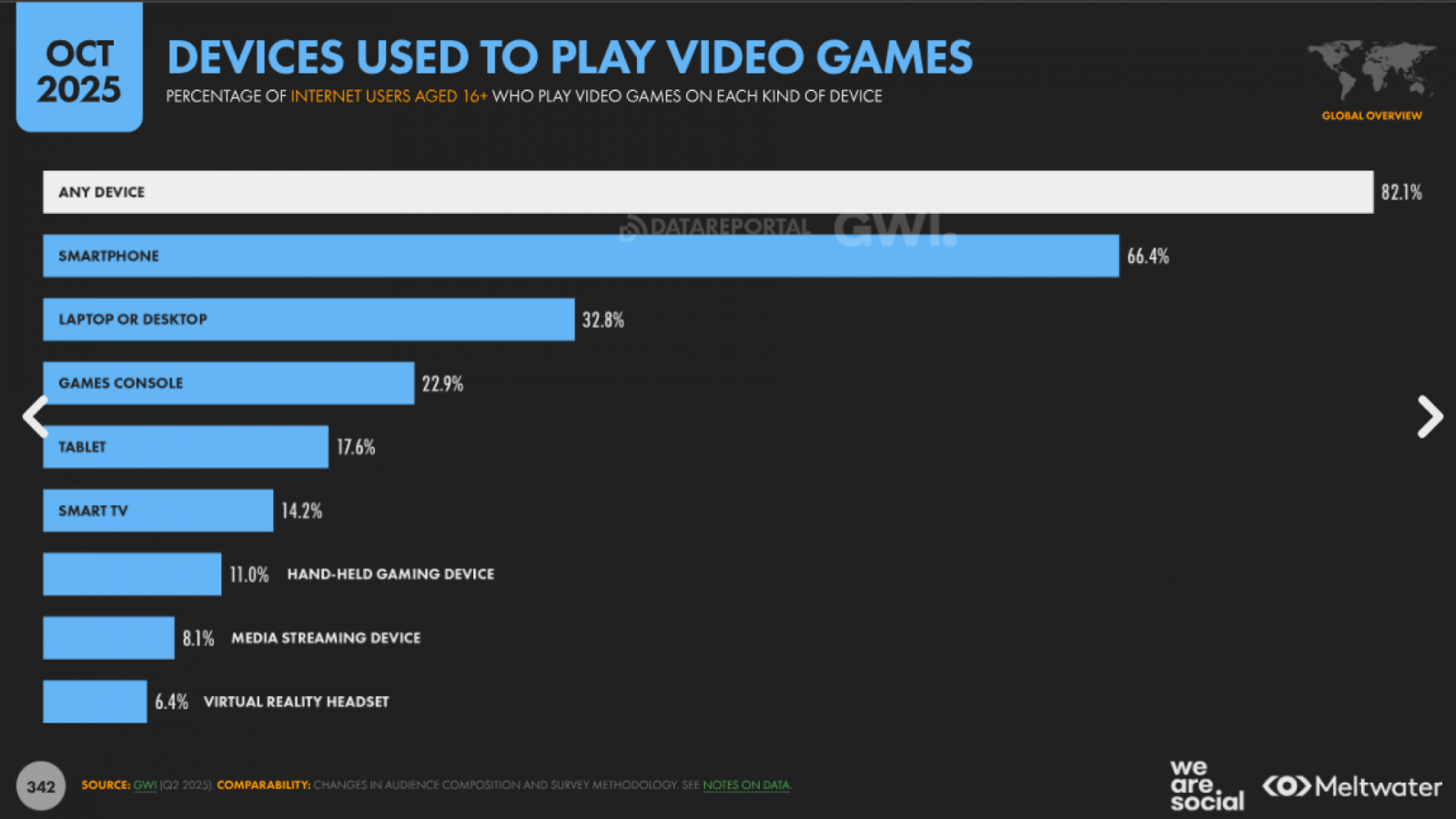 66% геймеров используют смартфон для видеоигр. Это делает мобильный гейминг одной из самых вовлекающих digital-сред.