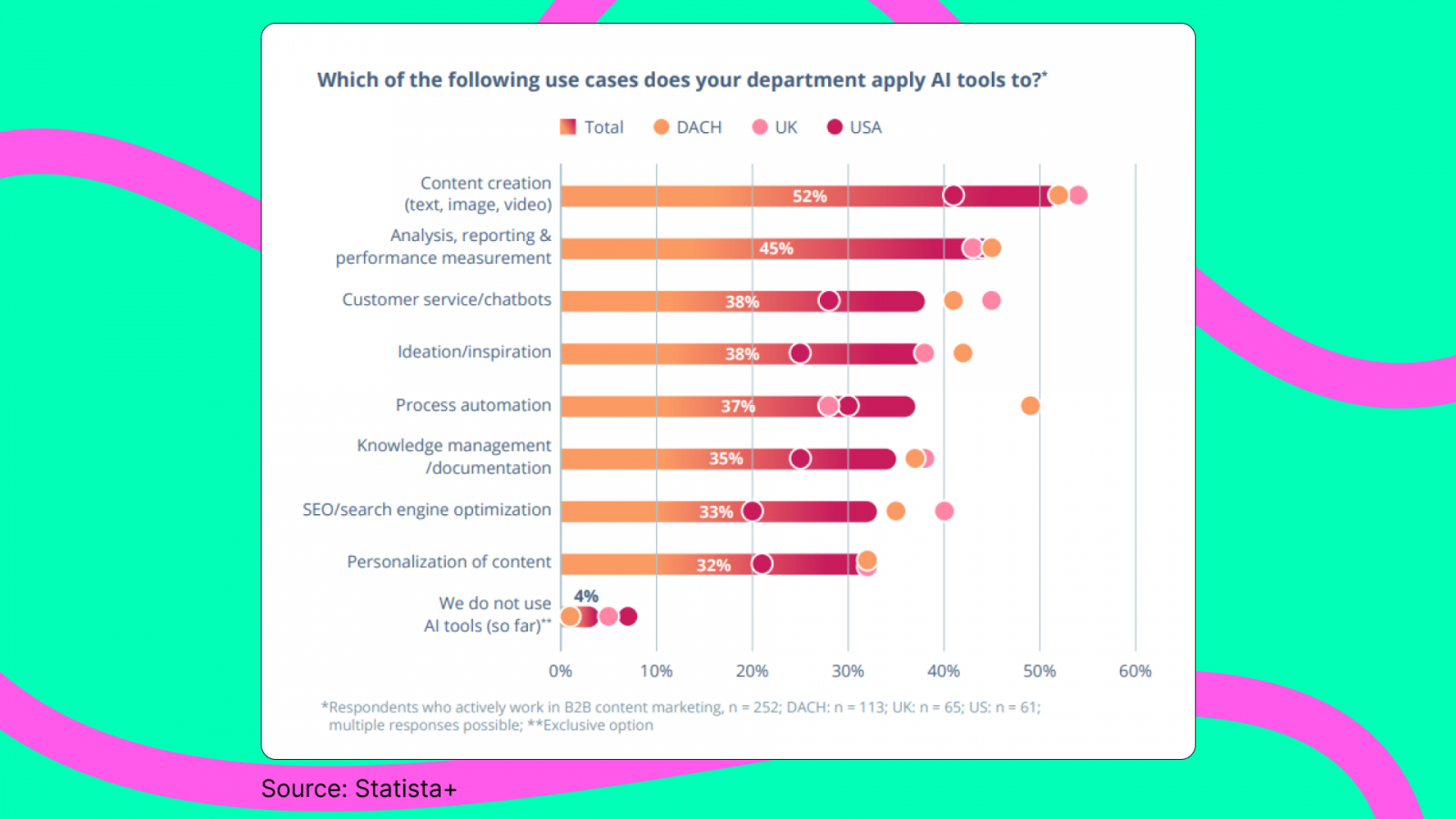 Например, в контент-маркетинге ИИ используется на всех этапах работы с контентом: от генерации идей до подготовки отчетности. Однако это приводит к увеличению объема контента и усиливает конкуренцию за внимание.