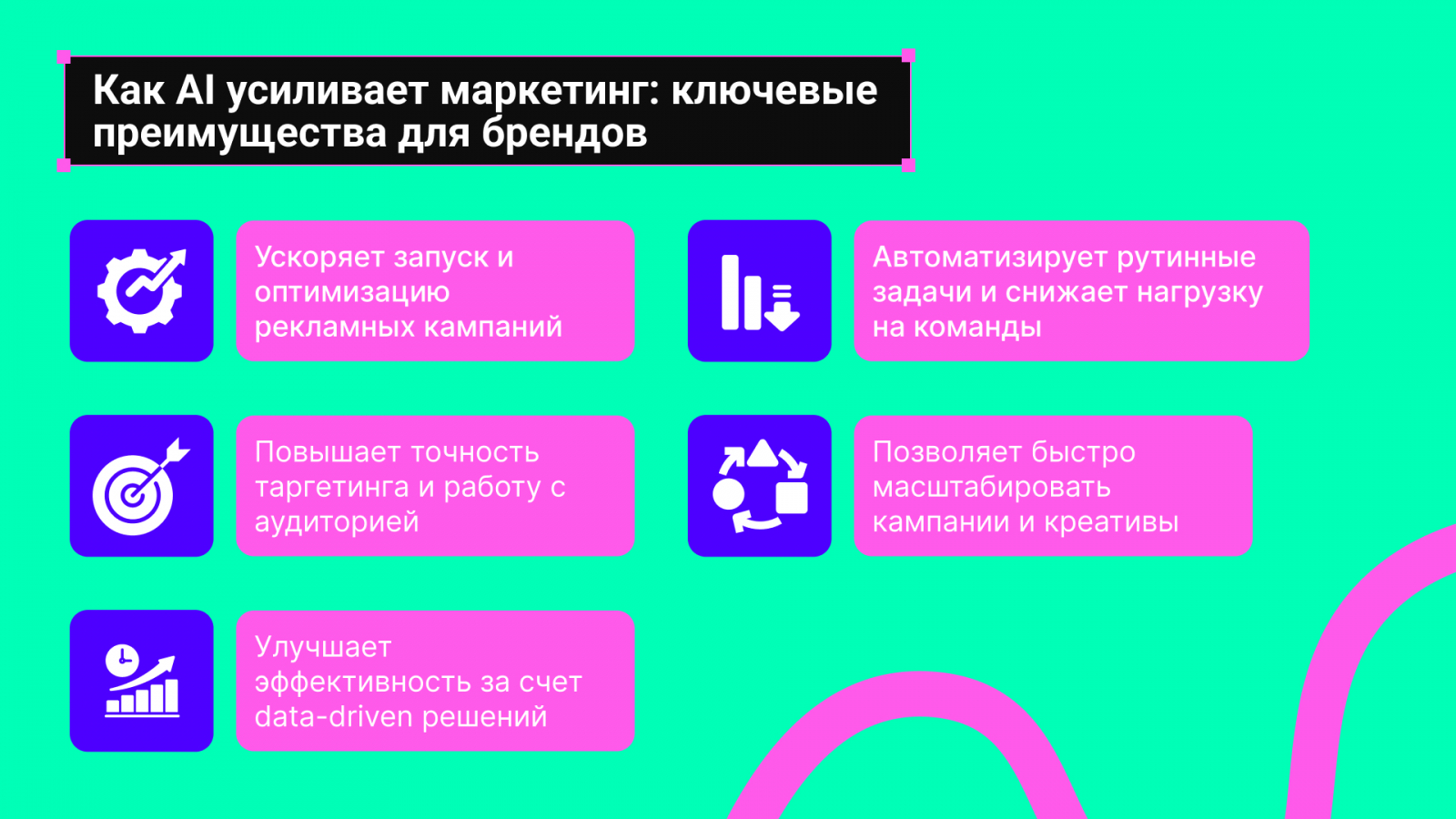 Таким образом, ИИ становится не отдельным инструментом, а сквозной технологией, которая усиливает все этапы работы с рекламой.