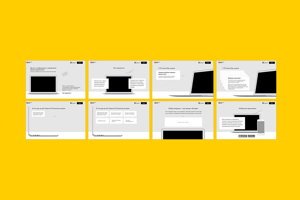 Digital-бюро удалось достичь целостности восприятия информации, быстрого и в то же время доступного способа донесения до пользователей информации о всех возможностях, которые предоставляет онлайн-версия банка. Новый, адаптивный формат промо-страницы R-Connect позволил клиентам использовать сервис со всех устройств, что с учетом специфики продукта очень актуально. Лидогенерация привлекла к продукту банка не только текущих, но и потенциальных клиентов. Все это сделало сайт удобным каналом получения информации для пользователей и эффективным инструментом для банка.