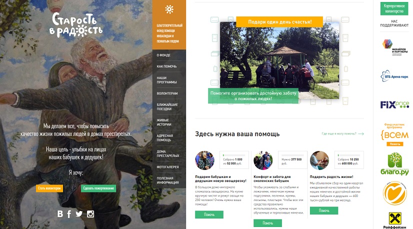 12 сентября начала свою работу новая версия сайта Благотворительного фонда помощи пожилым людям и инвалидам «Старость в радость», разработанная в рамках программы корпоративной социальной ответственности компании «Михайлов и Партнёры».