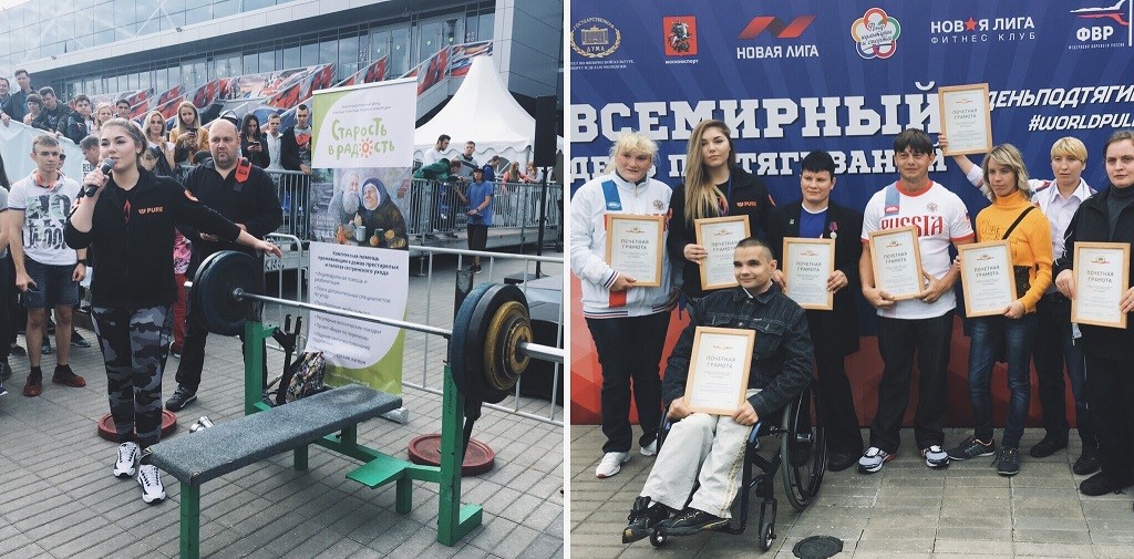 При поддержке Благотворительного фонда помощи пожилым людям и инвалидам «Старость в радость» и компании «Михайлов и Партнёры» в показательных выступлениях «Всемирного дня подтягиваний» приняли участие члены спортивной команды ГУ ТО «Дубненский дом-интернат для престарелых и инвалидов»: кандидат в мастера спорта по пауэрлифтингу, член сборной России, факелоносец Эстафеты Паралимпийского огня «Сочи 2014», многократный призер Чемпионата России по пауэрлифтингу среди мужчин Виктор Рузин и многократный победитель и призер чемпионата России по пауэрлифтингу среди женщин Любовь Рабинович.