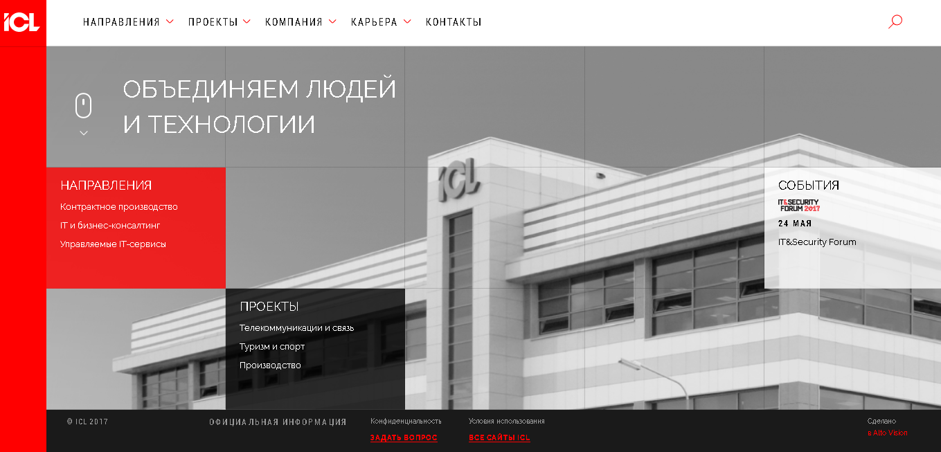 Группа компаний ICL запустила обновленный официальный сайт, усовершенствовала его верстку, а также внесла технические и функциональные изменения. Сайт станет точкой контакта для партнеров, клиентов и соискателей всех бизнес-направлений группы компаний ICL. Как рассказали в пресс-службе компании: «Благодаря современному адаптивному дизайну icl.ru стал удобным в компьютерах, планшетах и телефонах пользователей. Теперь сайт сам определяет тип и размер экрана устройства и автоматически подстраивает под него свои параметры. На нем стало удобнее искать информацию о продуктах и услугах, подбирать подходящий сервисный центр, оценивать отраслевую экспертизу компании и находить интересующую вакансию».