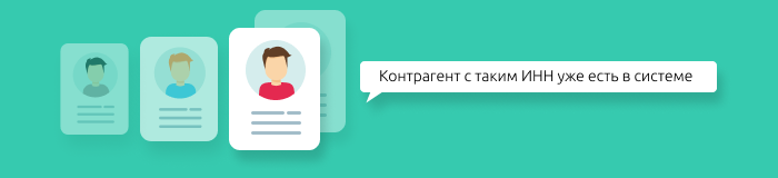 В Бизнес.Ру реализован контроль дублирования Контрагентов при ручном заведении карточки Контрагента в системе. Контроль осуществляется по ИНН Контрагента. При внесении ИНН в карточку Контрагента система проверяет, не внесен ли введенный ИНН в карточку другого Контрагента. Если система обнаруживает совпадение ИНН, то пользователю показывается подсказка "Контрагент с таким ИНН уже есть в системе". При этом у пользователя остается возможность сохранить карточку Контрагента с дублирующимся ИНН.