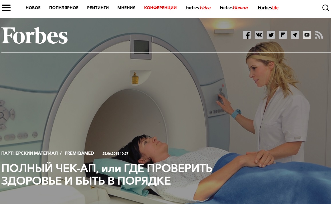 Дорогие коллеги, с удовольствием делимся с вами информацией об одном из специальных проектов для нашего клиента – сети австрийских клиник премиум-класса PremiQaMed, опубликованном в интернет издании Forbes. Специальный проект посвящен теме сохранения здоровья и молодости на долгие годы, что стало возможным, благодаря современным диагностическим возможностям частных клиник.