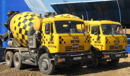 Название «Такси Бетон» и раскраска под такси позволили компании «СЗНК» выйти на рынок Москвы всего с 20 миксерами. "Службу доставки бетона" быстро заметили, у нее появились постоянные клиенты. Вот сайт компании: www.taxibeton.ru
