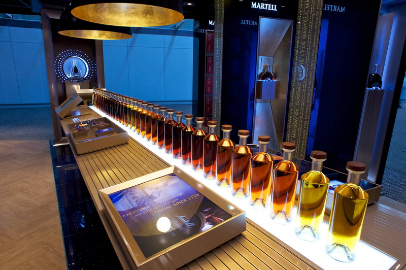 Создание концепта интерьера для коньяка Martell – тоже работа Centdegres. Они усиленно эксплуатируют глубокий синий цвет в пространстве Martell Experience Boutique в зоне Duty Free в Гонконге. В качестве дополнительного цвета – темно-золотой. Руководство хотело освежить бренд, они инициировали проект по созданию этих роскошных французских апартаментов от Martell. Надеюсь, покупатели их оценили, и, окунувшись в цветную ауру, купили по бутылочке легенды.