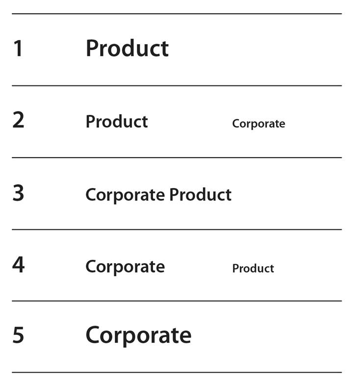 Вот реальная часто встречающаяся задача: как сделать связь «корпративный бренд + продуктовый бренд» ясной и доступной? По Куперу, всего может быть 5 ситуаций соотношения корпоративного и продуктового брендов: