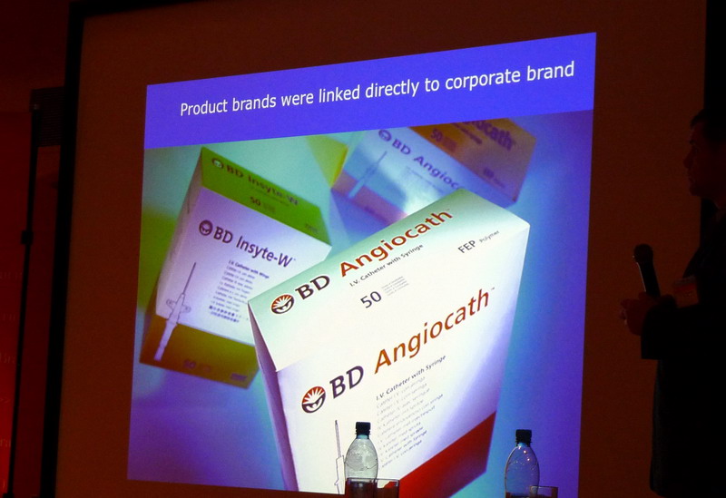Далее Джерри показывает кейсы и подробно рассказывает о своей работе: Invisalign (невидимые скобки для исправления зубов), ExxonMobile (новая фирма как результат слияния компаний), Touchstone Films (отделение Disney для взрослых), медицинские материалы от BD… Остановимся на последнем бренде!