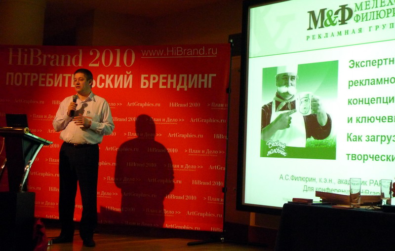 Поскольку Александр – человек публичный (у него и блог на Составе, и личный блог filurin.ru), то фрагменты его выступления уже были в эфире. Краткий рассказ о его выступлении на HiBrand я разбавлю ссылками, чтобы не повторять уже опубликованного. Кроме того, один или два кейса мы опубликуем в журнале «Рекламные Идеи» – интересна сама модель поиска решения, а в блоговую публикацию ее не запихнешь!