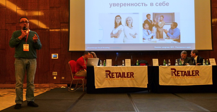 Клайв Вуджер на примерах кейсов брендинговых решений SCG London (СКАЧАТЬ ПРЕЗЕНТАЦИЮ) для X5 Retail Group, одежной сети Depstor и розничных магазинов спорттоваров «Зенит» рассказал собравшимся на конгрессе, как сделать свой бренд отличным от других. В первую очередь, сообщил эксперт, следует дать потребителю почувствовать его уникальность и отличие от других. Дать понять, что все действия и изменения в работе ритейлера делаются только ради него одного — ради покупателя.