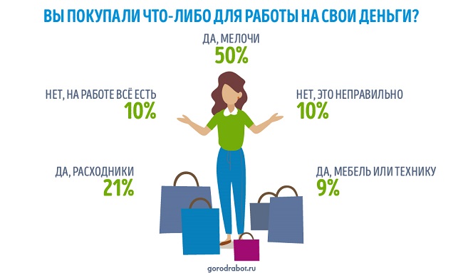 80% участников опроса ГородРабот.ру ответили, что им приходилось тратить личные деньги на то, чтобы купить что-то для работы.