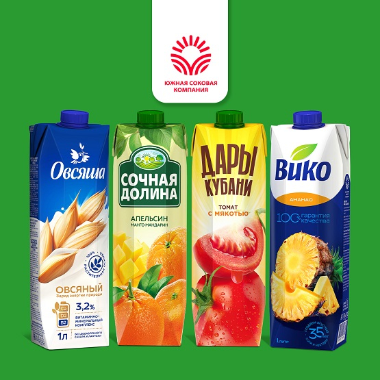 Южная соковая компания (ЮСК) — один из крупнейших российских производителей соков, нектаров, детского питания и растительных напитков. Продукция под известными брендами «Дары Кубани», «Сочная долина», «Вико» и «Овсяша» производится в Краснодарском крае, широко представлена в торговых точках по всей России.