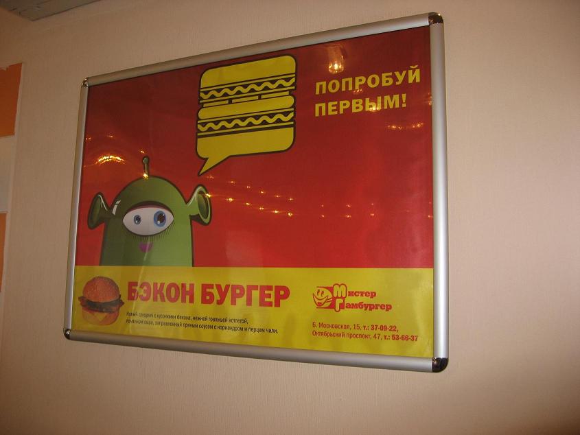 Акция проходила осенью 2009 г. в г. Владимире. Использовались конструкции Хорека, Сити-формат, интерьер ресторанов и реклама на автобусах нашей компании.