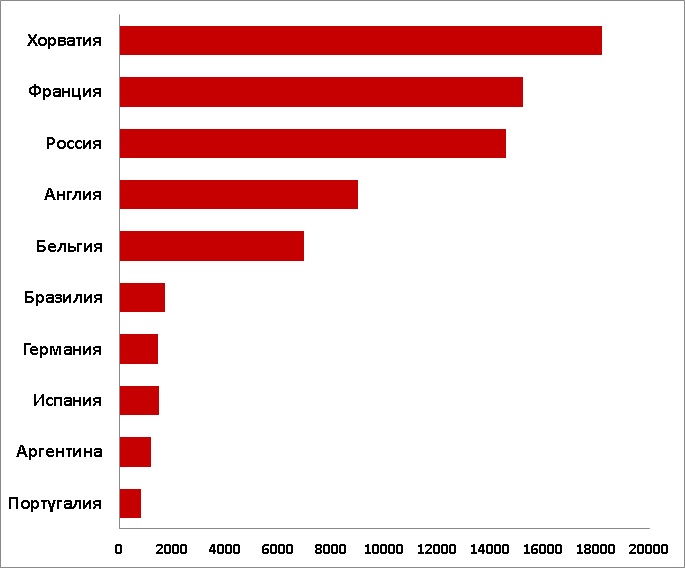 С 11 по 16 июля команды Хорватии и Франции показали резкий рост цитируемости в СМИ, сместив на третье место сборную России, которая на протяжении всего чемпионата прочно занимала 1-ую позицию рейтинга самых упоминаемых футбольных команд, подготовленного PR-агентством Идеи&Решения.