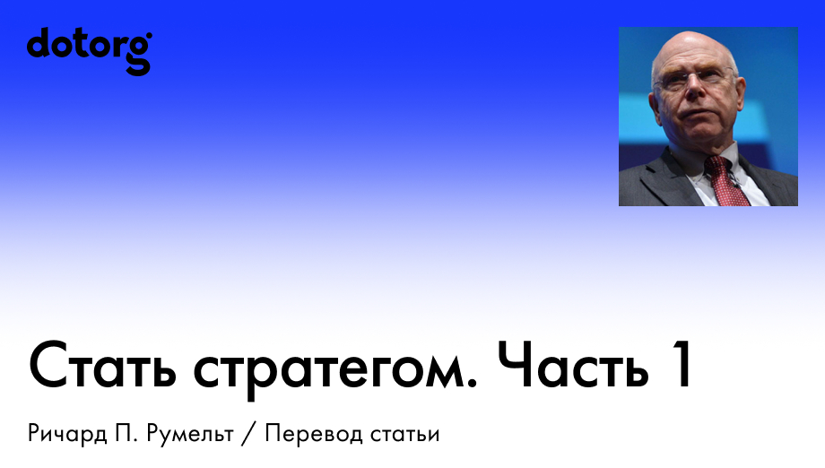 Меня зовут Арсений Кутовой, я стратег и партнер в агентстве Dotorg. Шесть лет назад я прочитал книгу Румельта «Хорошая стратегия, плохая стратегия». Подход и взгляды Румельта серьезно изменили мое понимание стратегии и деятельность агентства. Через некоторое время я начал работать по консалтинговым проектам с Михаилом Дымшицем и обнаружил такой же подход как у Румельта — проверять гипотезы действиями в реальном мире. Сегодня утром пришла рассылка из блога Румельта — «Стать стратегом». Это очень толковый материал, который я решил перевести по мере поступления всех публикаций.
