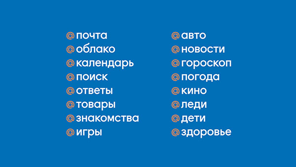 “В первых двух концепциях мы предложили визуализацию зонтичной архитектуры бренда. Несколько сервисов компании уместно было объединить в единую коммуникацию под знаком @ по схеме @продукт (прим. автора: «@почта»; «@товары»; «@игры» и т.д.)” - комментирует Станислав Окрух, творческий директор и партнер агентства SmartHeart.