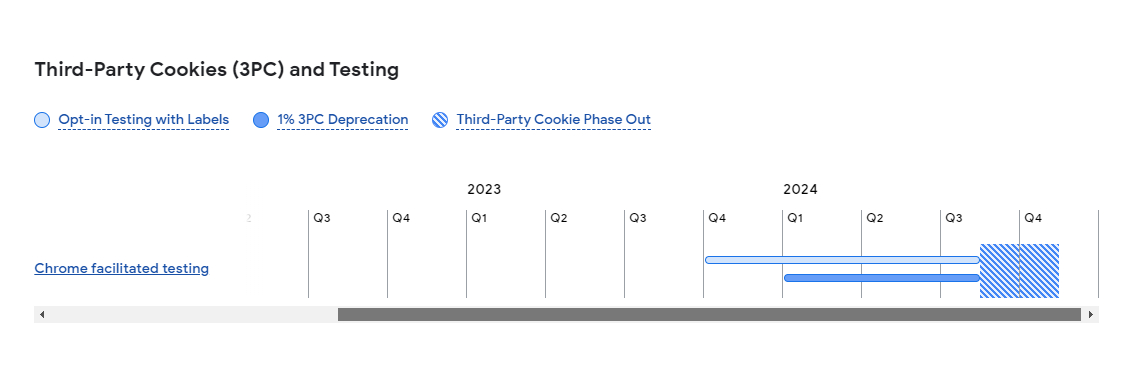 В первом квартале 2024 года Google планирует отключить сторонние файлы cookie для 1% пользователей, использующих браузер Chrome. Это позволит протестировать Privacy Sandbox на предмет трафика без файлов cookie в первой половине 2024 года.