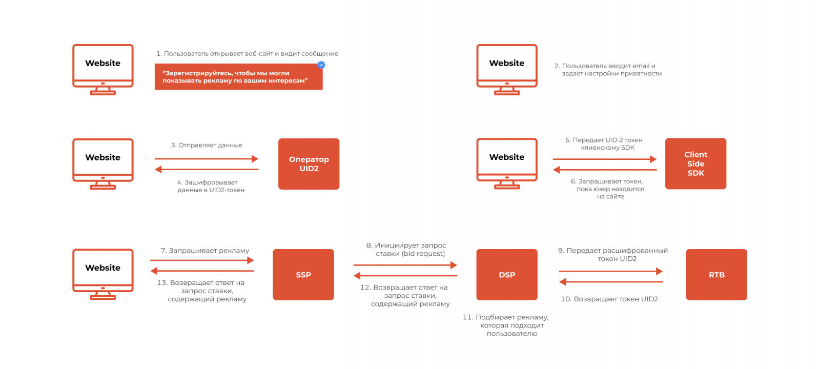5. Зашифрованная информация возвращается к паблишеру в виде UID2-токена. Этим токеном можно поделиться с SSP.