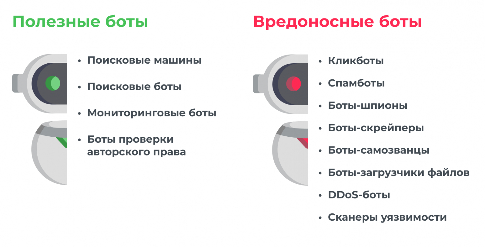 Итак, помимо вредоносных, существуют и полезные боты, среди них: