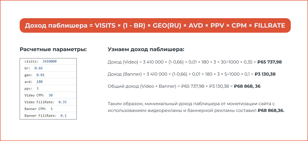 Готово! Теперь вы точно знаете ту сумму, которую может зарабатывать ваш сайт на показах видеорекламы и баннеров!