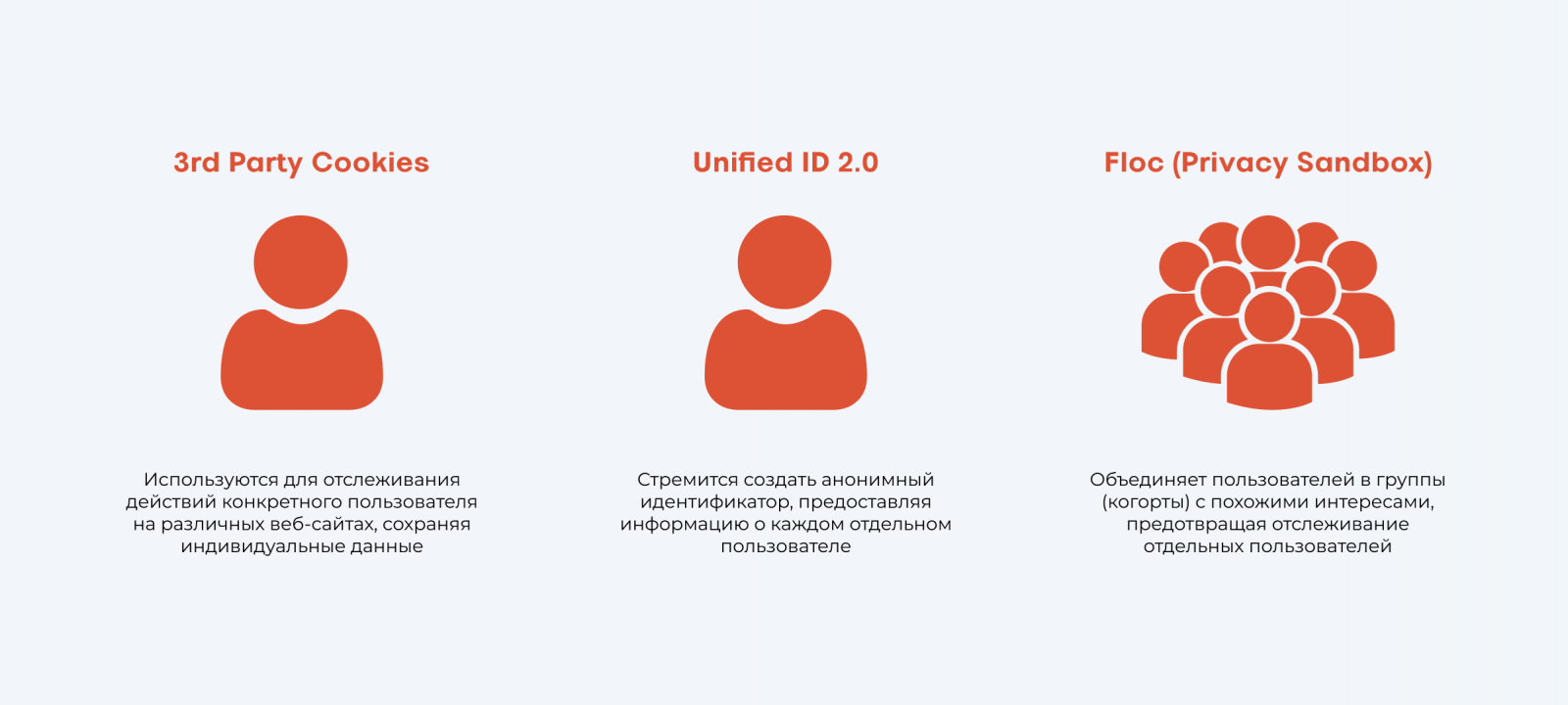 О «песочнице» конфиденциальности мы уже писали. Это конгломерат технологий, главная из которых FLoC. Privacy Sandbox делит пользователей на «когорты» с общими интересами, для которых и персонализирует рекламу. Персональные данные используются, но по ним не выйти на конкретного пользователя. «Песочница» эффективно идентифицирует, актуализирует рекламу и противостоит мошенничеству.